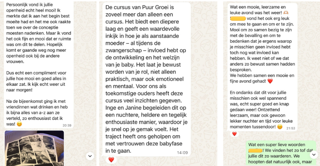 "Veel dingen vielen voor mij persoonlijk op de plek. Niet alleen informatie en bewustwording voor de zwangerschap, bevalling en jouw kindje, maar ook kom je veel te weten over jezelf."